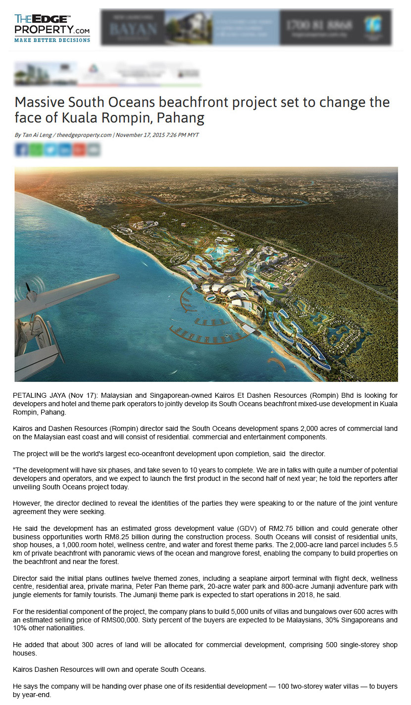Massive South Oceans Beachfront Project set to change the face of Kuala Rompin, Pahang – The Edge Property Malaysia